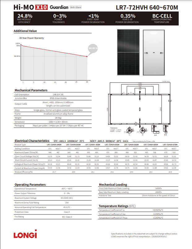 Product name : 640W-670W LONGi Mono Solar Panel
